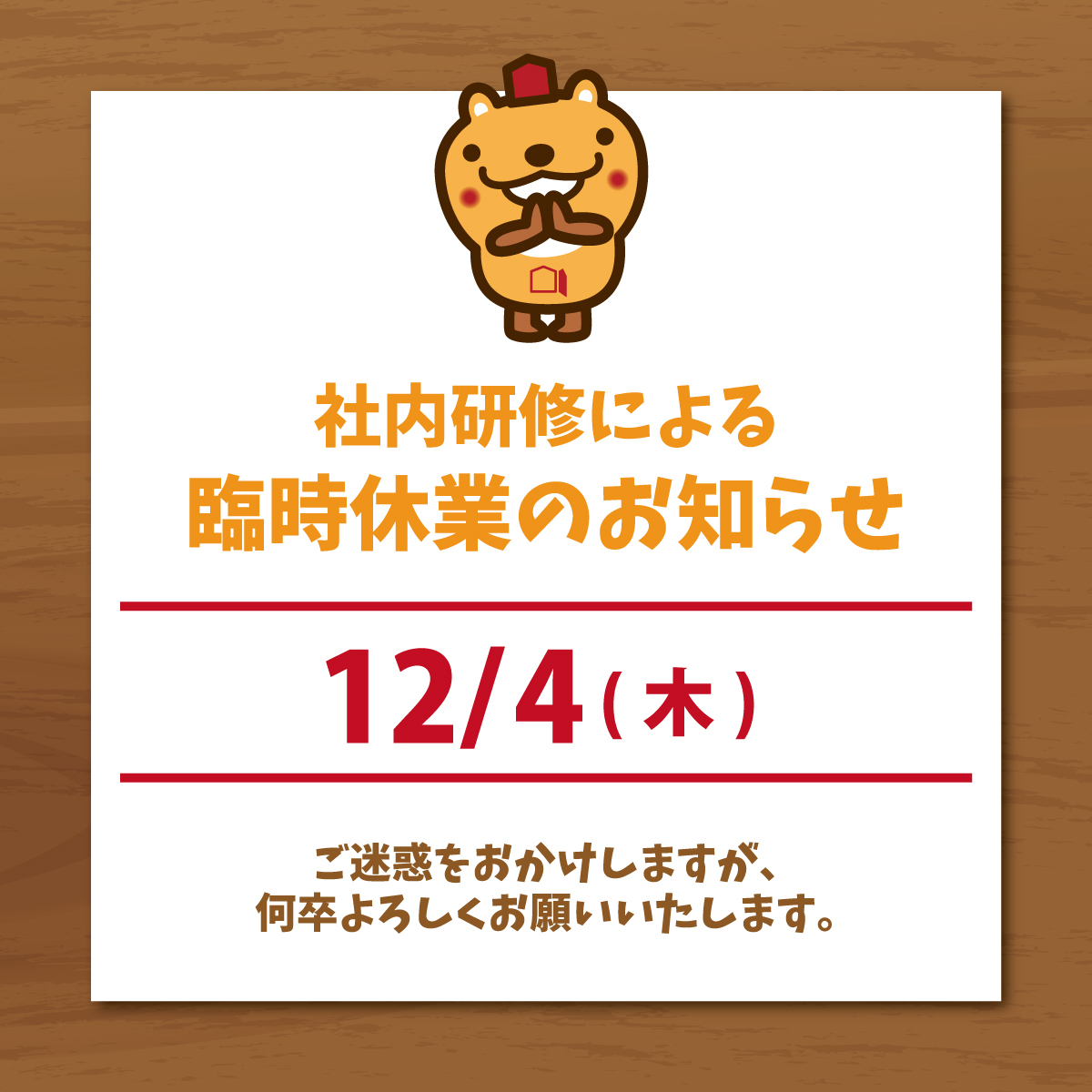いつも注文住宅の相談窓口 和歌山店をご愛顧いただき誠にありがとうございます。 誠に勝手ながら、社内研修のため下記日程を臨時休業とさせていただきます。 ——————————– ■臨時休業日 12/4(木) ———————— […]